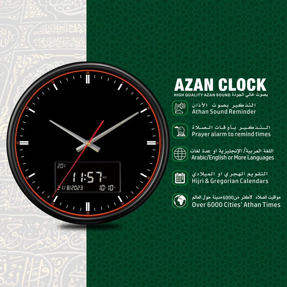 🕋 Horloge Adhan murale multifonction – Précision & sérénité au quotidien